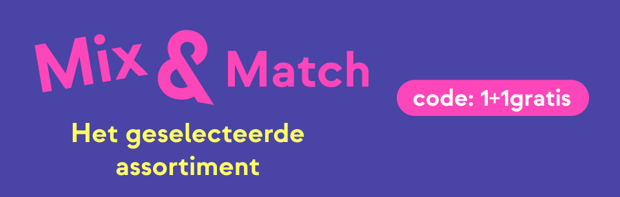 |   |   |   |   |   |   |   |  Deze actie is alleen vandaag geldig op dit geselecteerde assortiment. Het goedkoopste artikel wordt gratis bij gebruik van de code in winkelmand.   |