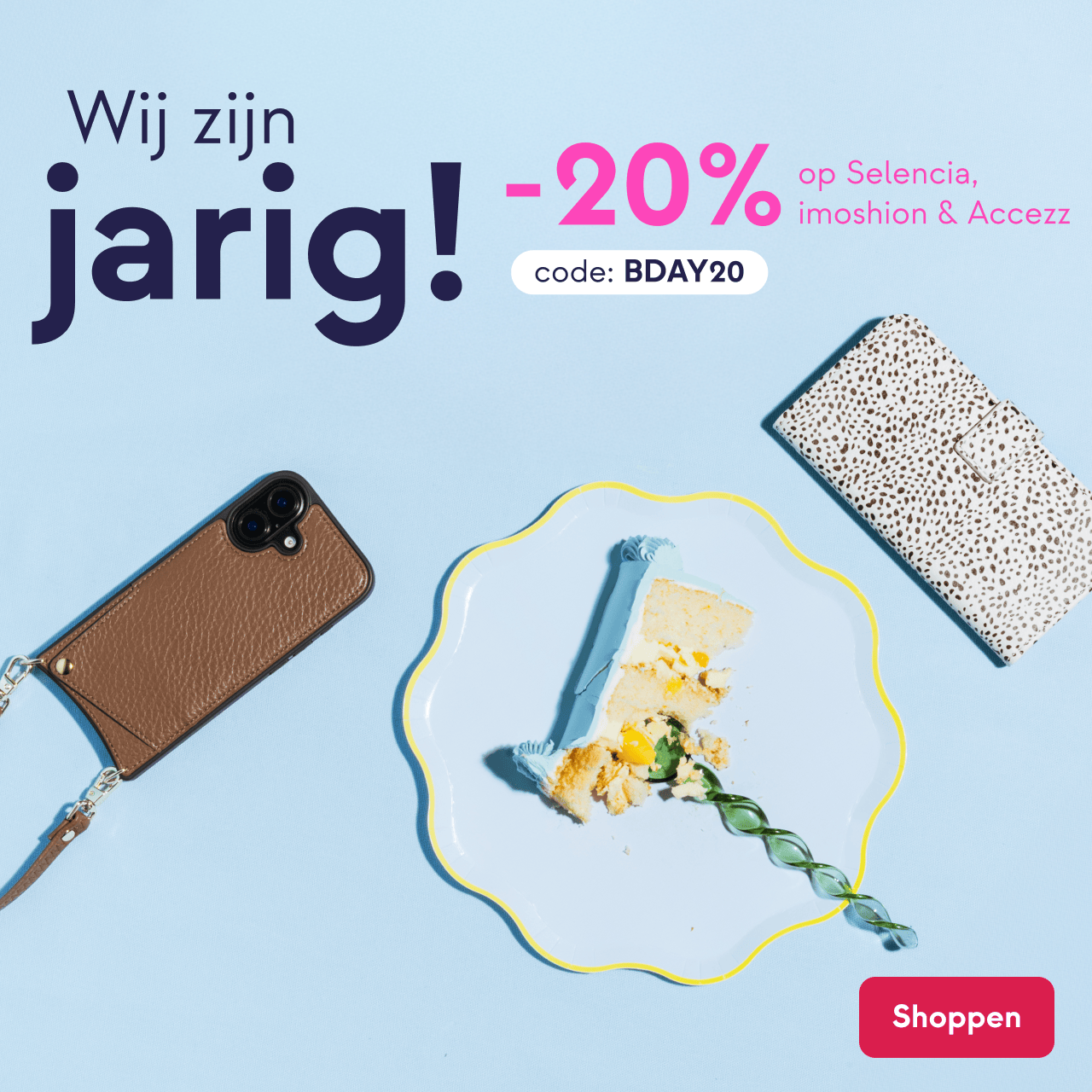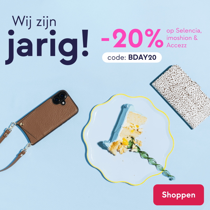 Wij blazen 15 kaarsjes uit, en dat willen we graag samen met jou vieren! Daarom ontvang je 20% korting op al onze eigen merken: imoshion, Selencia en Accezz met de de code: BDAY20. Ook voor jouw telefoon, smartwatch of tablet.