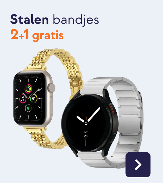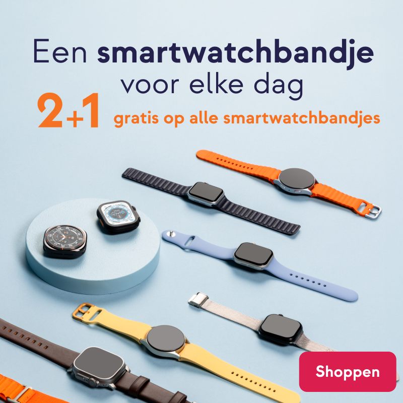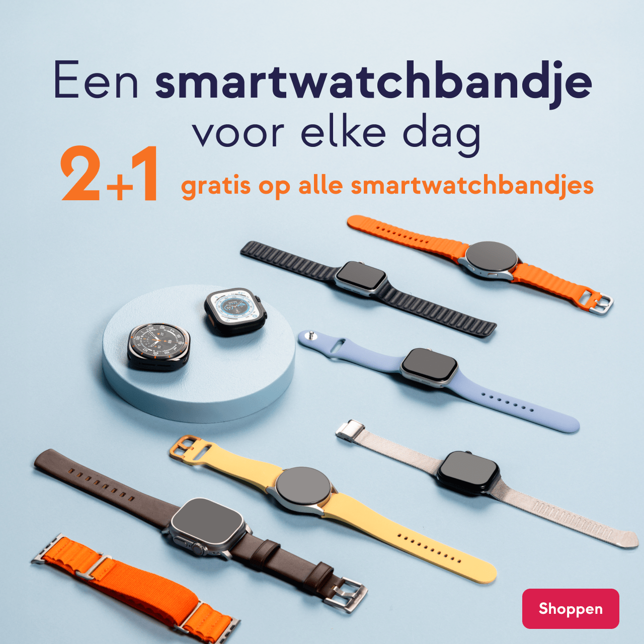 En psst.. wist je dat bij ons áltijd de 2+1 gratis actie geldt op smartwatchbandjes? De korting wordt automatisch verrekend in je winkelmandje.