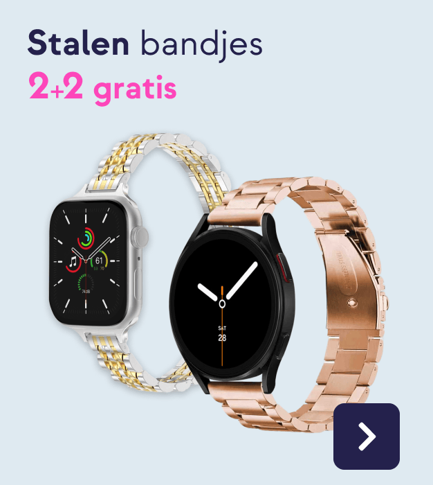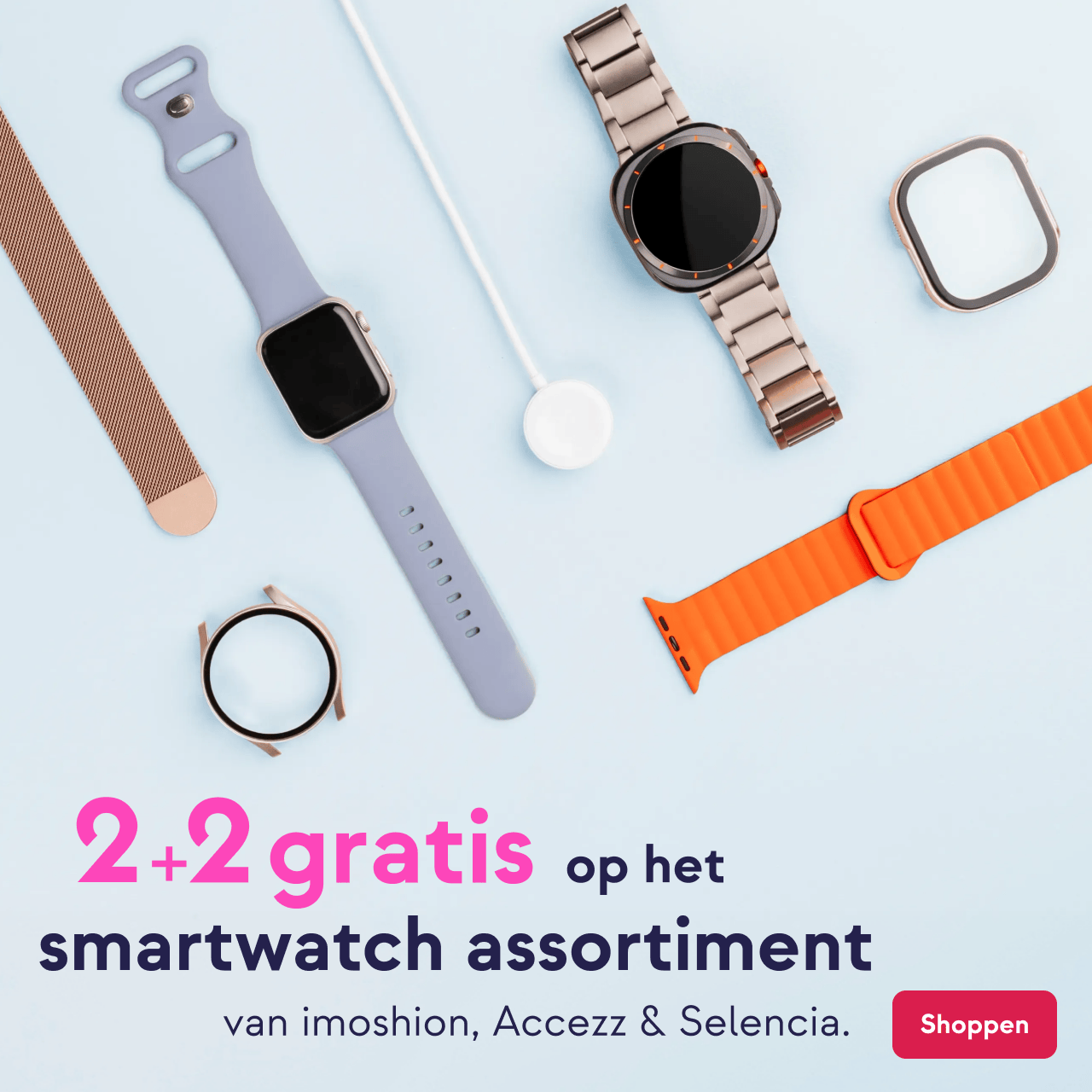 Mix & match! Geen gelegenheid is hetzelfde. Het bandje van jouw smartwatch toch ook niet? Daarom zijn tot en met 9 maart alle smartwatch accessoires 2+2 gratis. De korting wordt automatisch verrekend in je winkelmandje. Shop snel en maak je collectie compleet!